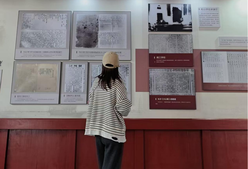 沿街往前走不远,船山学社的灰白大门缓缓映入眼帘。这座浸润着湖湘文化的建筑,在抗战时期曾是爱国志士的“精神堡垒”。在这里,曾有振聋发聩的抗日宣言回荡,曾有热血青年集结出发。党员们驻足檐下,指尖轻触朱红的石柱,耳畔似有先辈们的呐喊回响。偶尔的低声交流,不是闲聊,而是与历史的隔空对话,是对爱国情怀的深深共鸣。